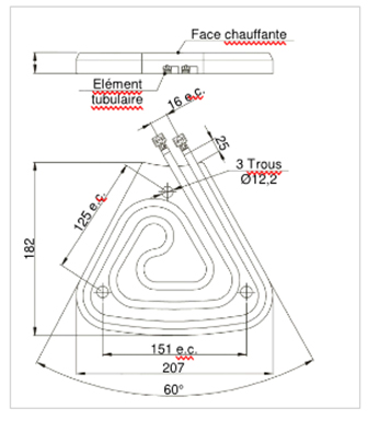 Plaque chauffante triangulaire à brider par vis ou gougeons.